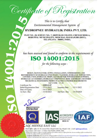 2023 – Executed the order for Hydraulic Hoists for operation of Emergency Gate(175 Te, 5350 mm Stroke) & Service Gate(280 Te, 5350 mm Stroke) of Mallannasagar Project of ICAD Telangana (Bonnet Gates)